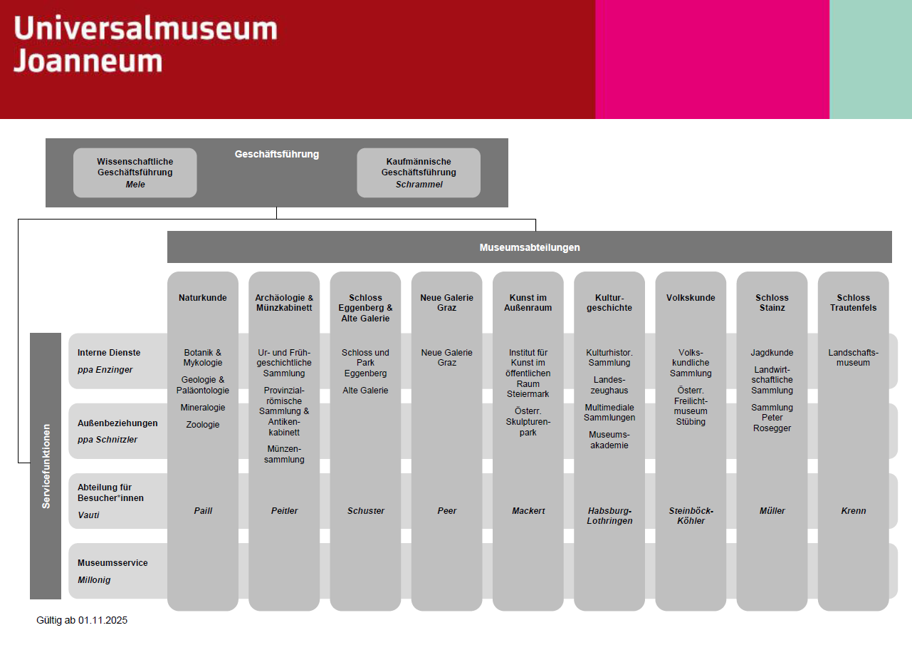 Das nachfolgende Konzern-Organigramm zeigt die Eigentümerstruktur der Universalmuseum Joanneum GmbH und ihrer Tochtergesellschaften: