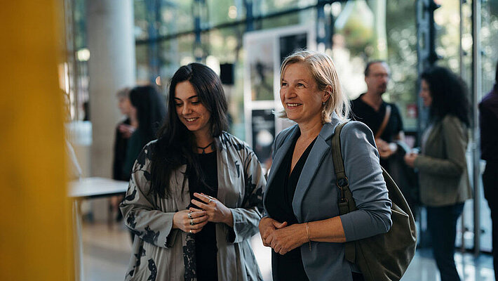 Vizebürgermeisterin und Jurymitglied Judith Schwentner mit der Künstlerin Camilla Alberti (l.) bei der Eröffnung von „Feeding the Ghost“, Foto: Julia Dax-Sinkovits/CreateJu