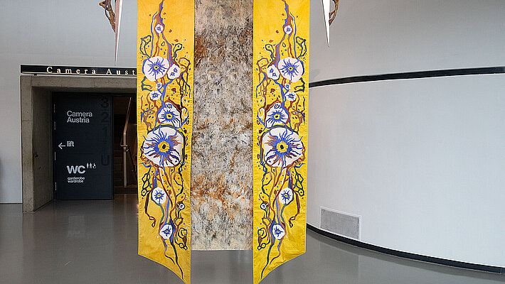 Camilla Alberti schafft mit Farben und Strukturen von organischen Abfällen neue rituelle Objekte, Foto: Kunsthaus Graz/J.J. Kucek