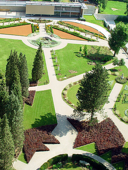 The Planetary Garden at Schloss Eggenberg is a unique venue designed by Helga Marie Tornquist and opened in 2004. This special garden is based on the Renaissance concept of planetary signatures, in which all earthly manifestations, including plants, colors and shapes, are assigned to the various planets. The garden sections in the Planetary Garden are designed according to this concept and are under the signatures of the seven classical planets. This creates a fascinating universe that presents itself in different facets throughout the seasons. The Planetary Garden is therefore not only a place of botanical diversity, but also a unique backdrop for events.