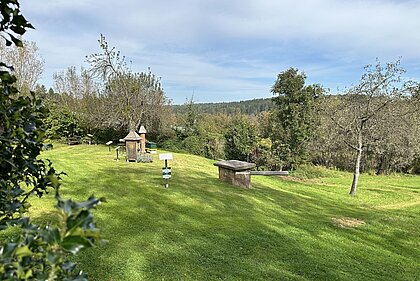 The Schenkkellergarten is located at the foot of the castle complex. The Schenkkeller, which gives the garden its name, is located in the entrance area of the garden, which is otherwise a natural meadow with old fruit trees. Schloss Stainz was founded as an Augustinian canons' monastery in 1229. In its present appearance, it has roots in both the Renaissance and Baroque periods. It sits enthroned in perhaps the most charming part of western Styria, where the Blaue Wildbacher - the Schilcher grape - thrives best. Today, the imposing castle houses the Joanneum's hunting museum and agricultural museum and serves as the Meran family's residence and business domicile.