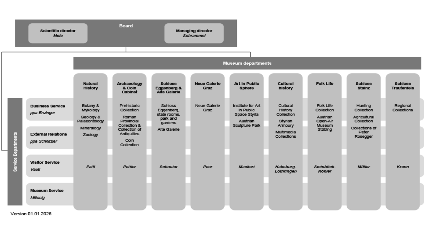As the most often visited cultural institution in the Province of Styria, we serve the public, shape the image of Styrian culture, and enrich people’s quality of life. Through our international projects and cooperations we position ourselves as an important partner in the European museum landscape and rank alongside renowned multi-disciplinary museums worldwide.