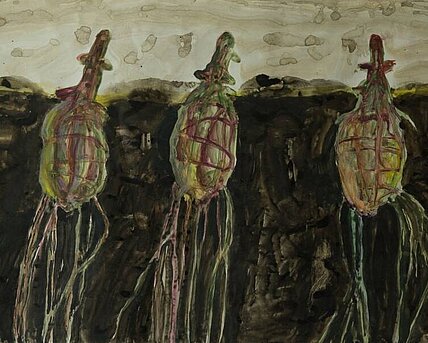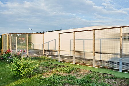 To that effect, L201 was further developed in 2022 and utilized as a venue. The thujas next to the art space were removed and replaced with a metal grid wall eight meters wide and four meters high. This wall thus becomes an advertising space or, better said, an alternative to advertising billboards on highly frequented roads. By displaying banners designed by artists, the potential of countless passing vehicles is used to convey artistic messages without having to meet capitalist demands.
