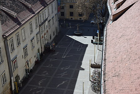 The floor painting “Drone Shadow” is a work by artist James Bridle, a British author, artist, and publisher.