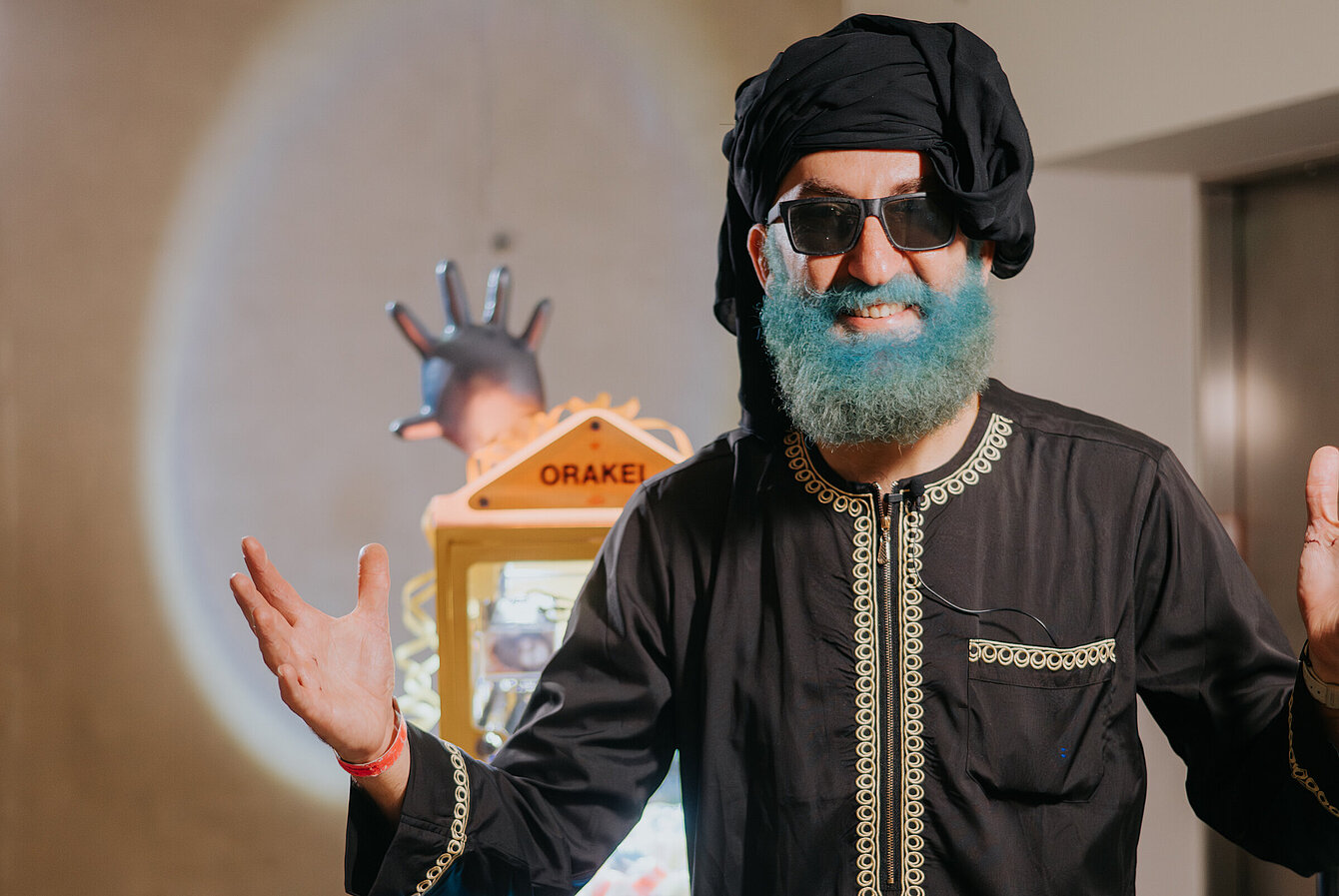 And today, after numerous exhibitions, projects, directorships and urban development initiatives, Keyvan Paydar not only wants to look back with his latest work for the Kunsthaus Graz, but to carry the utopian, into the future together with the non-visitors/visitors. His installation Quotenscheich X.0 is an oracular automaton, the DeLorean of the art space, so to speak, to constructively send suggestions, visions and criticism "back into the future". With one euro you are in and can happily and freely participate in the commercialisation of the unknown, the prophetic. Feel free to put the tarot cards from the museum shop back in their place and rather squeeze out the future as a work of art. Or is the artwork the future?