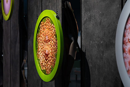 Chadwick—who has been present in Austria since the 1980s (including steirischer herbst 1987/1999; Galerie Lendl, Graz; Salzburger Kunstverein, 1994; MUMOK, 2015/2022)—worked across media and consistently explored hybridity. In innovative and often provocative material combinations, she united aesthetic beauty with the grotesque: meat, flowers, chocolate, compost, and bodily fluids became meaning-laden and often poetic elements in her work. Her feminist perspective is infused with wit, craft, and a critical approach to science and cultural history.