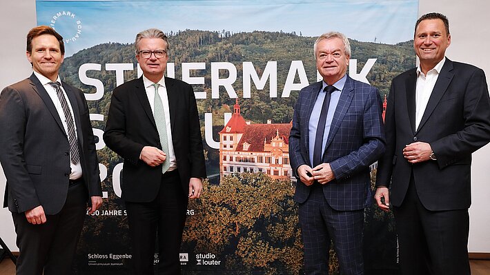 Landeshauptmann Christopher Drexler: „Die Hauptrolle in der STEIERMARK SCHAU 2025 spielt das Schloss Eggenberg. Wir nehmen das 400-Jahr-Jubiläum zum Anlass, um die beeindruckende Geschichte dieses Kultur- und Baudenkmals, das zum kollektiven Erleben der Steiermark gehört, zu erzählen. Entlang dessen, was die Ausstellung über das Schloss und die Familie Eggenberg vorstellen wird, wird sie eine große Reflexion der steirischen Geschichte - aber in keiner herkömmlichen Lesart. Die Räume im Schloss werden in einem ganz anderen, neuen Licht erscheinen und zeigen, welch vielfältigen Geschichten die Mauern erzählen. In die STEIERMARK SCHAU 2025 wird sehr viel an herausragender Inhouse-Kompetenz miteingepflegt und in Kooperation mit internationalen Ausstellungs-Machern zu einem einzigartigen Gesamterlebnis gemacht. Die kommenden Schau wird das Schloss Eggenberg in eine spannende, große Erzählung einbetten und damit ein Stück steirische Geschichte auf innovative Art und Weise erzählen.“