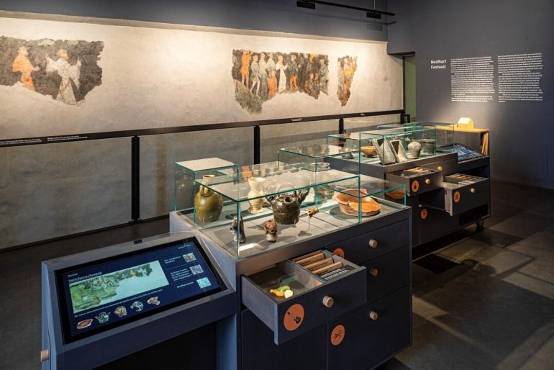 Nach einem Impulsvortrag zum Projektverlauf und den wesentlichen Inhalten besuchten wir die Ausstellungsräumlichkeiten und konnten die puristisch-klare, jedoch inhaltlich detailreiche und akzentuierte multisensorische Ausstellung sowie die originalen, sorgfältig restaurierten Fresken betrachten – samt Erläuterung ihres Inhaltes, des Entstehungsprozesses und Kontextes in Text, Film und Hands-on-Objekten.