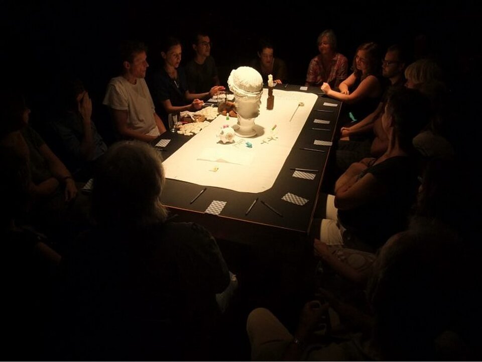 Kennzeichnend für all die vorgestellten Projekte ‒ „offene Ding-Akademie" (2015, Andrea Hubin, Herbert Justnik und Karin Schneider) im Rahmen der Ausstellung Klimesch. Das Geschäft mit den Dingen, „Seriöse Séance“ (2013; Andrea Hubin, Alexander Martos und Karin Schneider) im Kontext der Ausstellung Gelehrte Objekte? Wege zum Wissen und „Sharing Stories“ (2015‒2017), einem Kooperationsprojekt zwischen Welt Museum Wien, Brunnenpassage, dem Künstler Tal Adler und der Kunstvermittlerin Karin Schneider – ist die dezidierte Hybridität der Rollen aller Beteiligten und die Abwesenheit gängiger hierarchischer Instanzen im Museum. Die Rolle der Vermittler*innen ist eine stark kuratorische und vernetzende, nach innen wie außen. Die Vermittler*innen operieren mit großem Handlungsspielraum, sie definieren Räume und Themen, wählen gemeinsam mit Teilnehmer*innen Dinge und Objekte als bild- und zeigwürdig aus, sie setzen Handlungsimpulse und initiieren öffentlichkeitswirksame Kommunikationsströme über das Geschehen im Museum. Damit nehmen sie inhaltliche Setzungen vor, die auf einer >die Institution repräsentierenden< Ebene angesiedelt sind und gemeinhin als wenig geteiltes Privileg der Leitungsebene gelten. Institutionellen Rahmen mehrerer der geschilderten Aktionen bildete das Volkskundemuseum Wien, das in den letzten Jahren für seine – den klassischen Handlungsraum des Museums stark erweiternden – Projekte namhaft wurde.