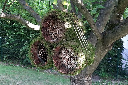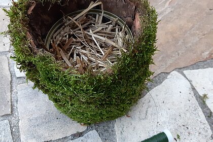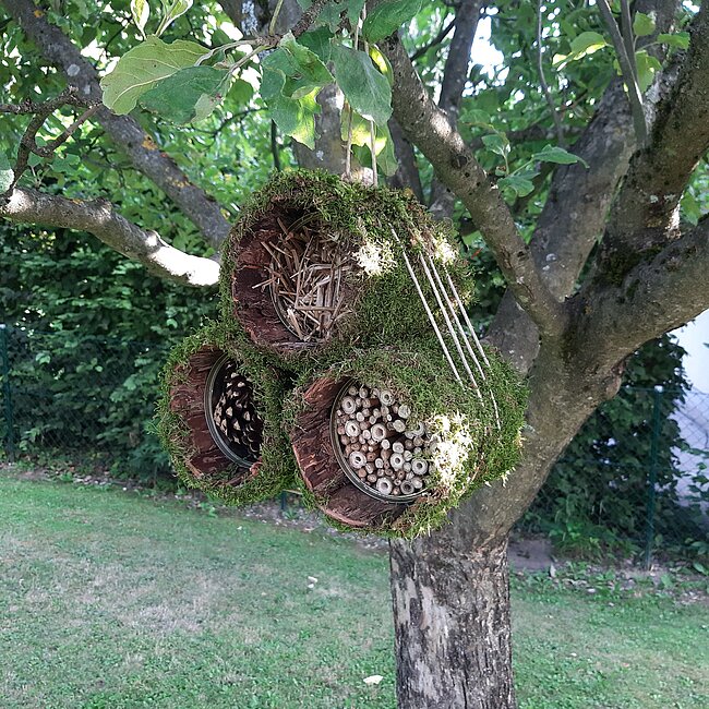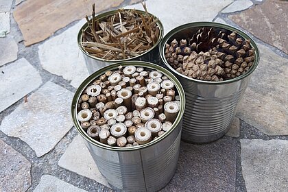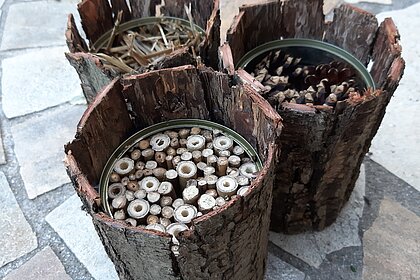 - Unterschiedliches Füllmaterial wie Lehm, Schilf, Bumbus Zapfen, Stroh, Totholz, kleine Äste