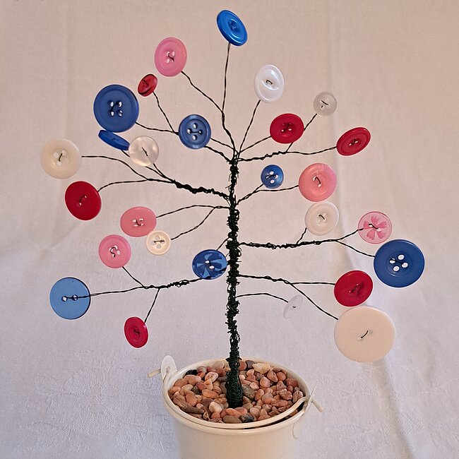 Hast du mehrere einzelne Knöpfe übrig und weißt nicht, was du damit anstellen sollst? Wie wäre es mit einem Drahtbaum? Mit nur wenig Material, aber viel Fantasie und Kreativität kannst du aus einem einfachen Draht und Knöpfen einen zauberhaften Baum zum Leben erwecken.