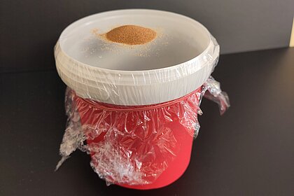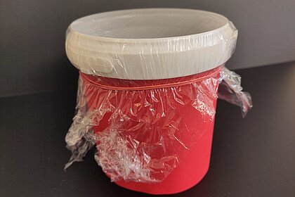 - Einen großen leeren Joghurteimer (1 kg) oder eine Schüssel