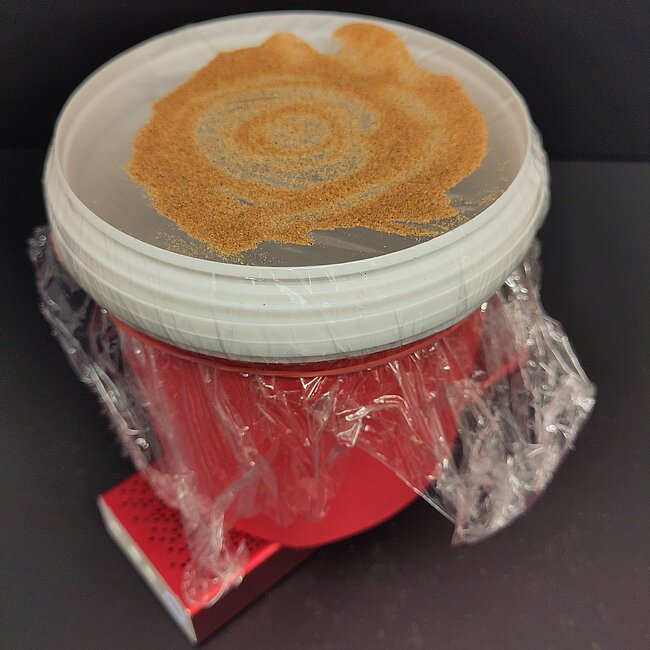 Was passiert da eigentlich? Der Ton aus dem Lautsprecher bringt die Luft zum Schwingen. Diese Schwingungen übertragen sich auf die Folie - und bringen den Sand in Bewegung. So kann man Schallwellen sichtbar machen!