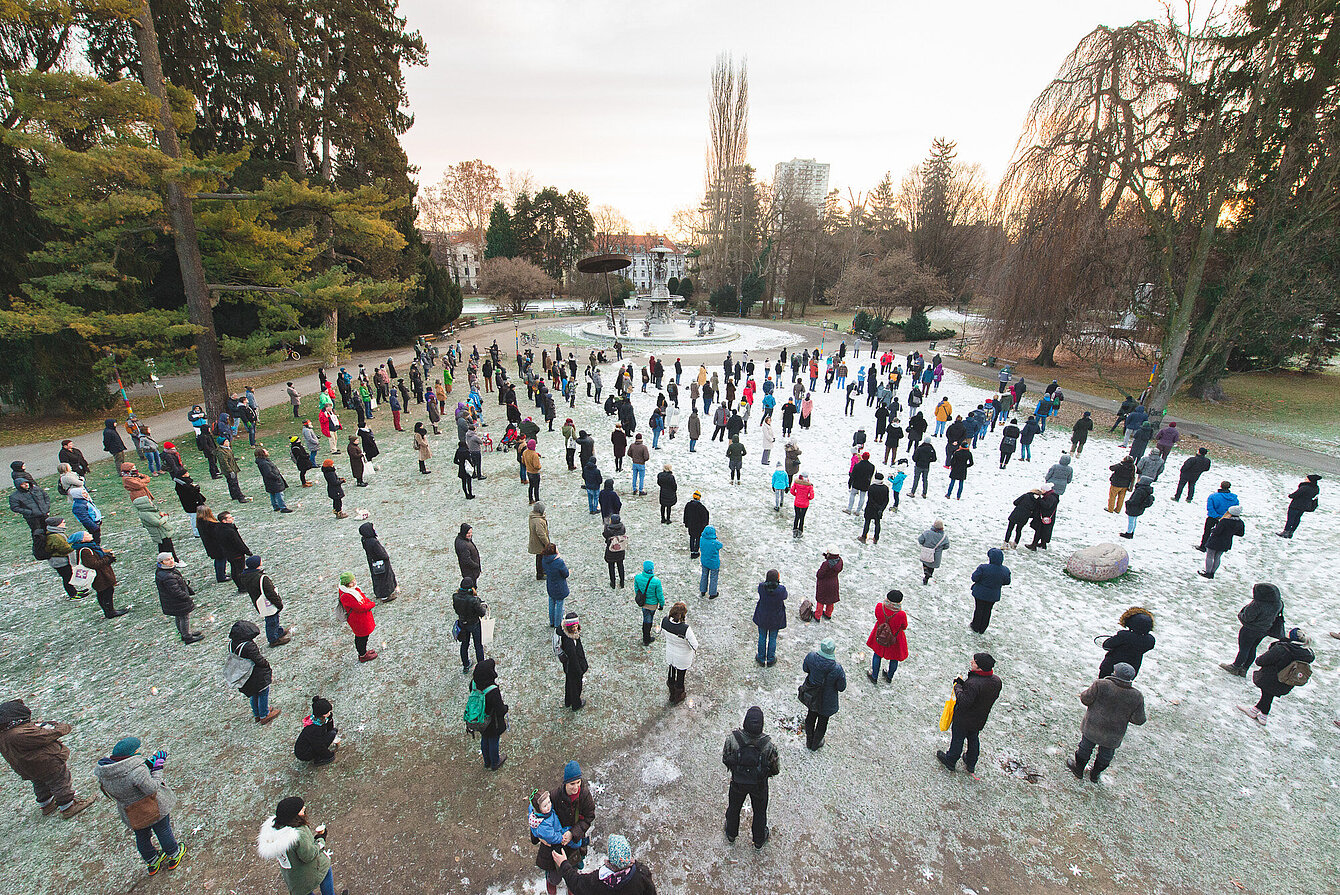 Im Anschluss an diese Mischung aus künstlerischem Happening, politischer Manifestation und öffentlichem Ritual laden wir zum Frühstück und die Versammlung löst sich in Geselligkeit auf.
