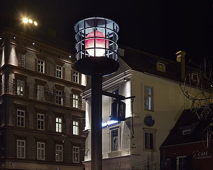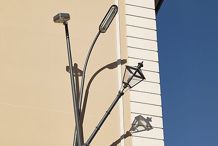 Wie ein „Gewächs des Ursprungs“ (so der Künstler) sind drei unterschiedliche ausrangierte Straßenlaternen in die Fassade des Akademischen Gymnasiums „gesteckt“: eine Bogenpeitschenlampe, ein gerader, sich konisch verjüngender Mast mit einer Ovalleuchte im geometrischen Stil der achtziger Jahre und eine traditionelle Stadtparklaterne, deren schmuckreich dekorierter Mast zu diesem Zweck eigens abgegossen wurde.