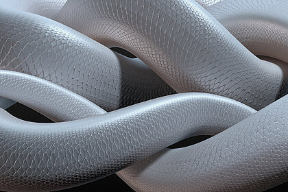 Mit mythologischen Symbolen und weiblichen Gestalten wie der von ihr verkörperten Sirenomelia entwirft Škarnulytė eine Perspektive jenseits des Menschlichen. Ihre Arbeiten fragen nach der Zukunft einer Welt, die durch den Menschen gezeichnet ist – und halten zugleich an der Hoffnung fest, dass Leben auch nach der Zerstörung weiterbestehen kann.