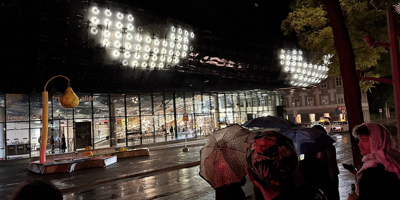 Passant*innen können aktiv eingreifen: Über einen Button ziehen sie den Blick der BIG EYES auf sich und werden Teil eines spielerischen Dialogs mit der Architektur. Die Fassade wird dadurch nicht nur zur Projektionsfläche, sondern auch zu einem reagierenden Interface, das auf seine Umgebung eingeht.