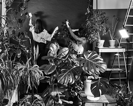 Im Dialog-Format rollen andererseits Fragmente einer Chat-Unterhaltung mehrerer Kooperative-Mitglieder über die Fassade. Befragt wird die Beschaffenheit des Zusammenlebens im fragilen Hybridraum zwischen Leben und Arbeit: dem Ökosystem Homeoffice. Mit Worten im Verschwinde-Modus und einem Augenzwinkern werden damit die Bilder des Trailers der Diagonale’22 auf den Plan gerufen, ganz dem ‘immergrünen’ Credo folgend: "Du brauchst nicht ökologisch zu werden. Denn du bist ökologisch."