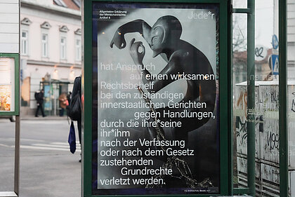 Die 30-teilige Plakatserie ist auf einen Zeitraum von sechs Jahren angelegt und basiert inhaltlich auf den 30 Artikeln der Menschenrechtserklärung. Iris Andraschek wird bis 2026 jedes Jahr fünf Menschenrechte visuell und inhaltlich erarbeiten und mit Abbildungen persönlicher Gegenstände, Fotografien und Wortdokumente Helmut Strobls verweben. Die Plakate werden jährlich rund um den 10. Dezember, den Tag der Menschenrechte, an ausgesuchten Orten der Stadt sichtbar.