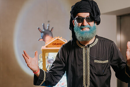 Und heute – nach zahlreichen Ausstellungen, Projekten, Intendanzen und Stadtentwicklungsinitiativen – will Keyvan Paydar mit seiner neuesten Arbeit für das Kunsthaus Graz nicht nur zurückschauen, sondern das Utopische gemeinsam mit den Nicht-/Besucher*innen in die Zukunft tragen. So ist seine Installation Quotenscheich X.0 ein orakelhafter Automat, quasi der DeLorean des Kunstraums, um Vorschläge, Visionen und Kritik konstruktiv „zurück in die Zukunft“ zu schicken. Mit einem Euro sind Sie dabei und können sich froh und frei an der Kommerzialisierung des Unbekannten, Prophetischen beteiligen. Legen Sie die Tarotkarten aus dem Museumsshop ruhig wieder zurück an ihren Platz und drücken Sie sich lieber die Zukunft als Kunstwerk raus. Oder ist das Kunstwerk die Zukunft?