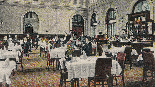 Wer um 1900 eine fremde Stadt betritt, ist zuvor häufig aus einem Zug gestiegen. Zwischen Zug und Stadt liegt der Bahnhof als Schnittstelle und vibrierende Übergangszone. Hier bewegen sich – in größeren Städten – über den Tag verteilt mitunter Tausende Menschen. Hier herrschen fortlaufend Dynamik und Betrieb: Die eine möchte sich informieren, der andere eine Fahrkarte oder Verpflegung für die Reise besorgen. Dritte bringen oder holen jemanden ab. Auch wer zum ersten Mal da ist, muss sich orientieren können. So entwickelt sich der Bahnhof im 19. Jahrhundert zu einem komplexen Funktionsbau. Alles ist wohlorganisiert, der Takt wird von der Bahnhofsuhr bestimmt.