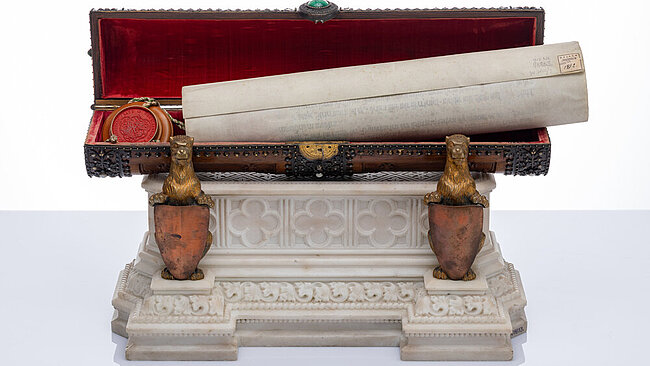 Schrein für Ehrenbürgerurkunde für Moriz von Kaiserfeld, Graz, 1864