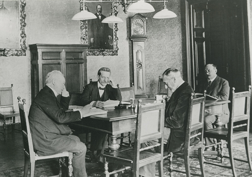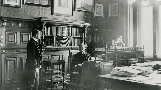 Hofrat Anton Underrain von Meysing in seinem Amtszimmer, Graz, vor 1916