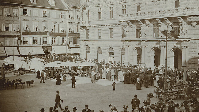 Leichenbegängnis für Bürgermeister Dr. Wilhelm Kienzl vor dem Grazer Rathaus, 1902