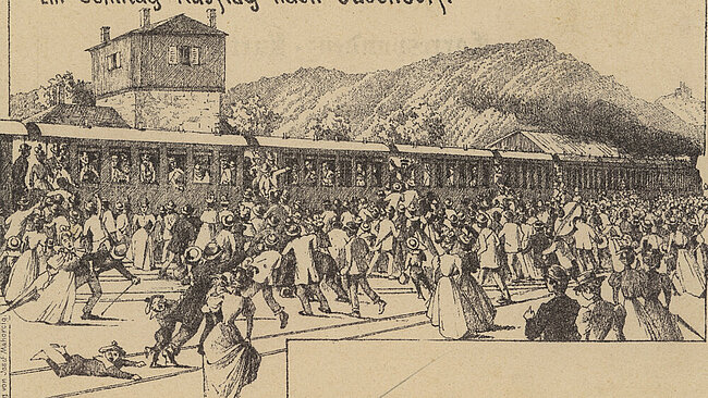 Wer einen Ausflug unternimmt, muss nicht zwingend in die Ferne reisen: Das Grazer Publikum zieht es nach Gösting, Judendorf und auf den nahen Schöckl. Die Bergregion im Norden wird durch Schutzhütten und Aussichtswarten erschlossen. Pittoreske Klammen und kunstvolle Panoramen machen die einst gefürchteten Berge zu Sehnsuchtsorten. Nicht nur im Sommer. Die Jahrhundertwende bringt den Durchbruch für eine völlig neue Wintersportart: 1893 wird in Mürzzuschlag das erste Skirennen Mitteleuropas ausgetragen.