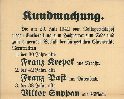 [1942:] Erste Todesurteile des Grazer Volksgerichtshof