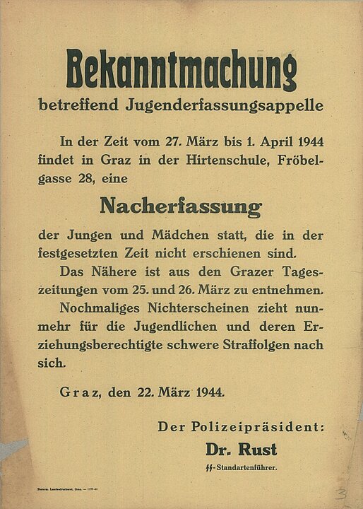 Jugend und Jugendlichkeit spielten für den Nationalsozialismus eine zentrale Rolle. Der NS-Staat verstand sich im Gegensatz zur Weimarer Republik als das „junge“ Deutschland. Jugendlichkeit und Jungsein wurden so zum Wert an sich. In der Propaganda wurden die Jugendlichen als die nationalsozialistische Zukunft idealisiert. Mit Verlockungen und Zwängen versuchte man junge Menschen an das Regime zu binden und sie im nationalsozialistischen Geist zu erziehen. Sie sollten zu „rassenbewußten, körperlich gesunden, geistig regsamen, charakterlich gefestigten, lebensbejahenden, kameradschaftlich denkenden Menschen“ werden, wie es Adolf Hitler formulierte. All jene, die nicht Teil dieser rassistischen Gemeinschaft sein konnten oder wollten, wurden gewaltsam ausgeschlossen und vernichtet. Für alle anderen bedeutete es bedingungslosen Gehorsam und Disziplin. „Du bist nichts, dein Volk ist alles“, war die Parole der Jugenderziehung.