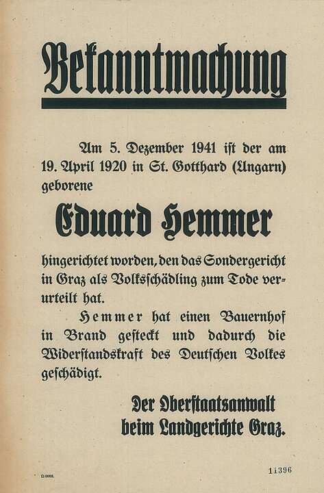 Die Bildung der „NS-Volksgemeinschaft“ war ein Prozess des Ein- und Ausschlusses. Wer den rassistischen und ideologischen Kriterien des Nationalsozialismus entsprach, konnte Teil der „Volksgemeinschaft“ sein. Wer diese Kriterien nicht erfüllte, war Verfolgung, Terror und Mord ausgesetzt. Ziel der Verfolgung waren an erster Stelle Jüdinnen*Juden. Aber auch viele andere Gruppen und Personen wurden aus rassistischen oder ideologischen Gründen Opfer des Nationalsozialismus, so beispielsweise Romnja*Roma. Für die Verfolgung der Menschen war der NS-Terror-Apparat verantwortlich: Gestapo, Sicherheitsdienst der SS (SD) und die für die Rechtsprechung verantwortliche Justiz. Aber auch einfache „Volksgenoss*innen“ schauten der Verfolgung widerspruchslos zu. Oder sie beteiligten sich daran in unterschiedlicher Weise. So wurden in der Steiermark Tausende Menschen von den Nationalsozialisten ermordet, in Konzentrationslager oder Gefängnisse verbracht.