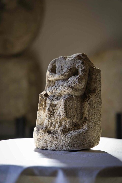 Im Freigelände des Tempelmuseums Frauenberg finden seit über 70 Jahren archäologische Forschungsarbeiten statt. Im Jahr 2014 entdeckte man bei der Freilegung der Schlauchheizungsanlage eines spätantiken Wohnhauses einen verkeilten Stein in der Fundamentmauer. So wie der Stein in der Mauer lag, erregte er die Aufmerksamkeit der Forschenden: Es schien, als ob unter dem Fundament noch mehr zu finden sei. Bei der Bergung erwies sich das ominöse Stück als Votivstatuette einer stillenden Muttergöttin. Sie wies den Weg zu 16 weiteren solchen Statuetten, die unter dem Wohnhaus in einer Abfallgrube verscharrt lagen. Die ersten christlichen Gläubigen am Frauenberg wollten den heidnischen Kult für alle Zeit entweihen und schlugen den Figuren die Köpfchen ab. Seit Jahrtausenden werden Muttergöttinnen als Fruchtbarkeit spendende Nothelferinnen verehrt. Wer Hilfe in einer Schwangerschaft, bei einer bevorstehenden Geburt oder Segen für den Nachwuchs erbitten wollte, wandte sich an diese Göttinnen, die in unterschiedlichen Kulturen verschiedene Namen trugen. Den Namen der "Göttin vom Frauenberg" kennen wir heute nicht mehr, die Eigenschaften, die sie versinnbildlicht, sind uns allen aber ein Begriff. Die Votivstatuetten, die man vor langer Zeit im Tempelareal platzierte, verstehen wir heute als Ausdrücke von Wünschen, Sehnsüchten und Hoffnungen, deren Wortlaut wir nicht mehr kennen, deren Absicht beim Anblick der stillenden Frauenfiguren aber heute noch zu spüren ist.
