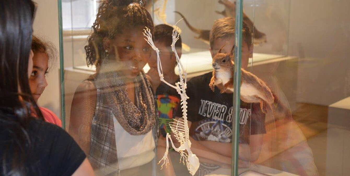 Bei diesem Spaziergang durch die Ausstellung treffen wir auf bekannte und weniger bekannte Säugetiere, Vögel und Insekten. Welche Spuren hinterlassen die Tiere beim Gehen, wie sieht ihr Fell im Winter aus und welche Laute geben sie von sich? – Was kann eigentlich alles eine Spur sein? Außerdem erfährst du, wie Tiere miteinander kommunizieren, umeinander werben oder einander vor Fressfeinden warnen. Ein Blick auf die ansonsten verborgenen Skelette unterschiedlichster Tiere zeigt die ausgezeichnete Anpassung an ihre Lebensweise.