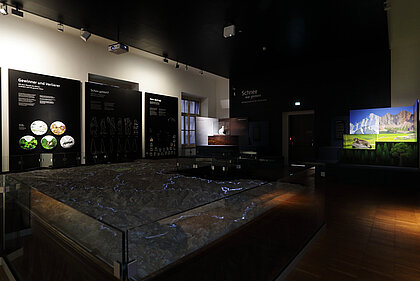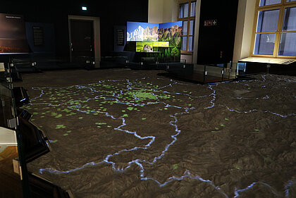 Auf Raumplanung, Land- und Forstwirtschaft kommen neue Herausforderungen zu. Neben Präparaten, Texten und Grafiken präsentieren wir auch eine Projektion auf dem über 120 Jahre alten Steiermark-Relief.