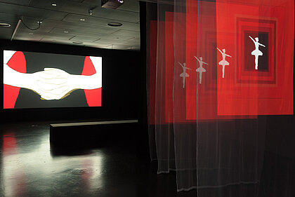 In einem poetischen Arrangement aus zwei gezeichneten Filmen und einer Installation gibt sie Einblick in ihre persönlichen Erfahrungen mit geschlechtsspezifischen Stereotypen in beiden Kulturen. Behutsam lotet sie den Freiraum und die Möglichkeiten zeitgenössischer Kunst zwischen Wien und Teheran und damit zwischen vermeintlichen Freiheiten und gesellschaftlichen Vorschriften, feministischen Errungenschaften und patriarchalischen Strukturen, avantgardistischer Ästhetik und traditioneller Symbolik aus.