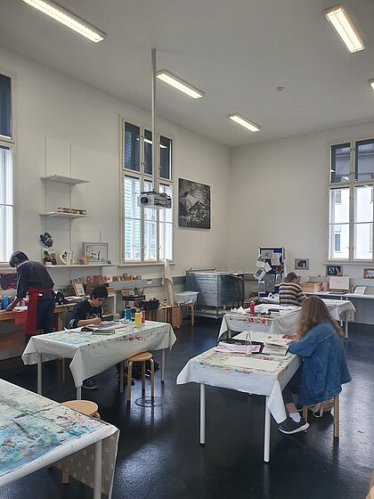 Was? DAS ATELIER ist ein kostenfreier, wertfreier und geschützter Raum für kreative Entfaltung. Es verbindet Kunstvermittlung und Kunsttherapie und erkennt Kunst als Ressource: Sie stärkt Kompetenzen wie Ausdrucksfähigkeit, Selbstwirksamkeit, Selbstvertrauen und ermöglicht persönliche Entwicklung. Farben, Pinsel, Druckmaterial und viele weitere Materialien liegen bereit!