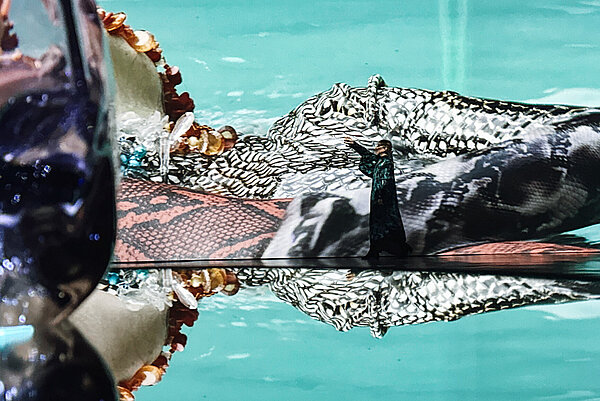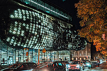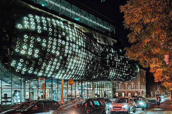 Beyond My Skin, das Gewinnerprojekt von Radical Hope der Künstlerin Flavia Mazzanti, bringt mit Trackingdaten, Tanz und Bewegtbild das Thema Berührung an die Lichtfassade des Kunsthauses.