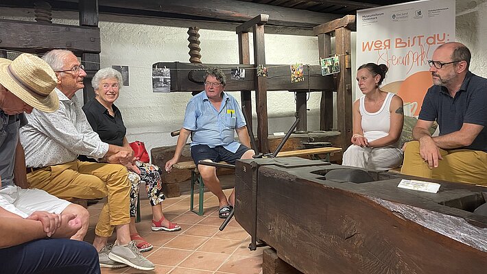 Im Rückspiegel - zwei ganz besondere Geschichten aus dem steirischen Vulkanland lieferten uns in der August-Ausgabe von "Was erzählst du: Steiermark?" beim Gespräch im Heimat.Museum im Tabor, Feldbach genügend Gesprächsstoff: Ausgehend von der Ölkuh im Heimat.Museum im Tabor, Feldbach und dem Läuferstein (catillus) einer römerzeitlichen Handdrehmühle im Römerzeitlichen Museum Ratschendorf drehte sich das Gespräch diesmal um Kernölgeschichten, bäuerliche Produktionsweisen, Manderln und Weiberln sowie persönliche Erinnerungen und Lieblingsrezepte rund um das "schwarze Gold" aus der Steiermark.