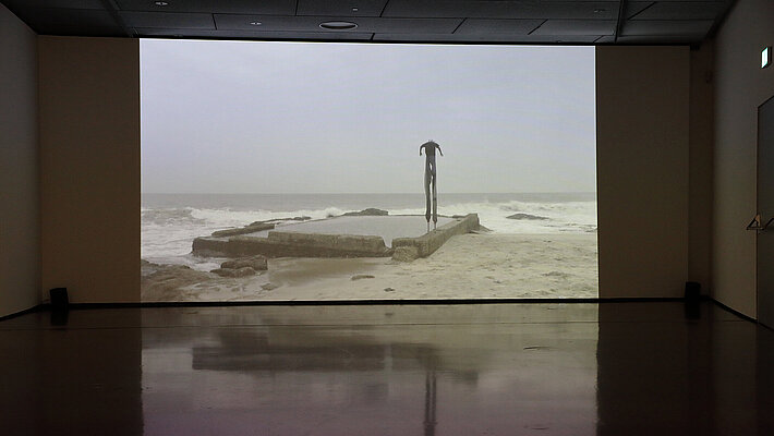 The Elephants und Landscapes Die Ausstellung im studio der Neuen Galerie Graz zeigt die Videoarbeit The Elephants. Sie ist an Salvador Dalís gleichnamiges Gemälde aus dem Jahr 1948 angelehnt, in dem der Künstler den Elefanten als Symbol für Stärke und Herrschaft mit langen, zerbrechlich wirkenden Gliedmaßen kontrastiert. Gronostay übersetzt die dünnen Beine durch Stelzenläufer – ausschließlich in DWMC gekleidet –, die unter anderem auf die lange Handelsgeschichte zwischen dem europäischen und afrikanischen Kontinent und auf den liminal space verweisen.