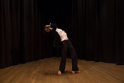 Diese bisher umfassendste Schau der Künstlerin zeigt neben sechs älteren Arbeiten eine Neuproduktion, eine Koproduktion mit der Stiftung Bauhaus Dessau. Zusammen bilden diese das inhaltlich-visuell-räumliche Gerüst der Ausstellungsszenografie. Der Ausstellungsraum wird zur Bühne für eine Inszenierung in verschiedenen Szenen und dabei selbst zur Szenerie.