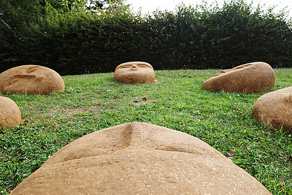 Mit der Arbeit wERDEN_Frauenberg 2024 setzt sich die Künstlerin Marina Stiegler mit der Abwesenheit dieser Köpfe auseinander. Sie baute im Juli einen Kreis aus Lehmköpfen, die mit Pflanzensamen angereichert eine Verbindung mit der Erde eingehen werden. Es ist eine vergängliche Kunstaktion zum ewigen Kreislauf des Werdens und Vergehens, die als Ehrerbietung an das weibliche Prinzip und die Göttin verstanden werden will.
