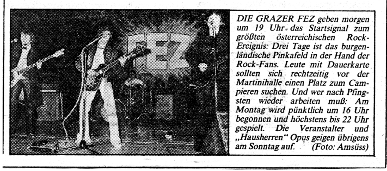 „Fez“ wurde 1977 von Toni Gruber gegründet, der bereits viel Rock‘n‘Roll-Erfahrung bei den Bands „Hide&Seek“ und „Jewel 6“ gesammelt hatte. Weitere Gründungsmitglieder waren Werner Poglits, Joshuah Schneider und Sigi Ritter. Die deutsche Producer-Legende Conny Plank („Can“, „Kraftwerk“) produzierte in seinem Studio 1978 die erste Single der Gruppe „On the Road“. Die erste LP „Fez the Night“ wurde 1981 vom Austro-Pop-Barden Wilfried produziert. Es folgten zahlreiche Auftritte in Österreich und Deutschland. Bald darauf zog sich die Band aus der Öffentlichkeit zurück und meldete sich 1983 mit radikaler musikalischer Neuorientierung und unter dem leicht abgeänderten Bandnamen “Fezzz!” zurück.