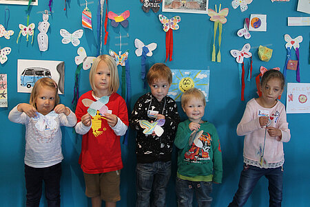 Der Rundgang endet im ATELIER: Hier arbeiten die Kinder kreativ, wählen Malvorlagen aus oder gestalten nach einer Idee des Schladminger Malers und Grafikers Herbert Bauer (www.herbertbauer.at) bunte Schmetterlinge.