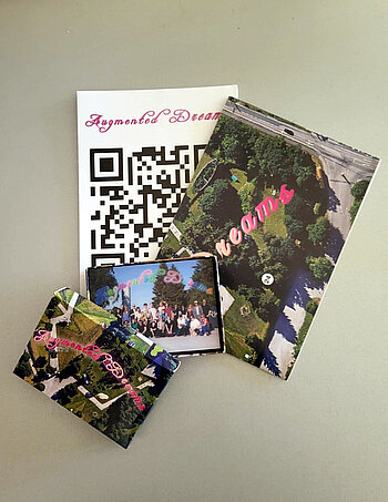 Kartenset bestehend aus 24 Linsenrasterbildkarten, Faltplan und Folder zum Projekt Artists in Residence 2022: Argumented Dreams der Klasse von Peter Kogler, Akademie der Bildenden Künste München
