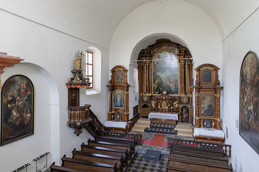Die St. Antoniuskirche mit Gemälden von Pietro de Pomis und Hans Adam Weißenkircher gehört zum ausgedehnten Museumskomplex des Volkskundemuseums.