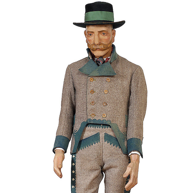 Bis auf den Hut sind also alle Teile nicht aus der Stainzer Gegend – ein weiteres Beispiel für Gerambs Praxis, Kleidungsteile aus unterschiedlichen Gegenden der Steiermark ohne Scheu zusammenzusetzen und die Trachtenfigurine trotzdem in einer bestimmten Region zu verorten. Hüte signalisierten bereits seit dem frühen Mittelalter die Zugehörigkeit zu einer bestimmten sozialen Schicht. Im Kontext der Herausbildung von nationalen und regionalen Identitäten wurden sie zum Kennzeichen einer bestimmten Region.
