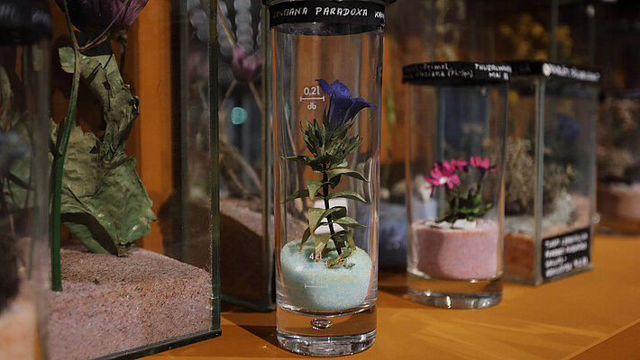 Zeitgenössische Positionen und Leihgaben aus den Sammlungen des Universalmuseums Joanneum als auch von privaten Leihgeber*innen sind zu sehen. Die Pflanzensammlung von Wolfram Hannig (1923–2009) ist das Ergebnis jahrzehntelanger Reisen und einer sehr persönlichen wie aufwendigen Sammelpraxis, Foto: Kunsthaus Graz/J.J. Kucek